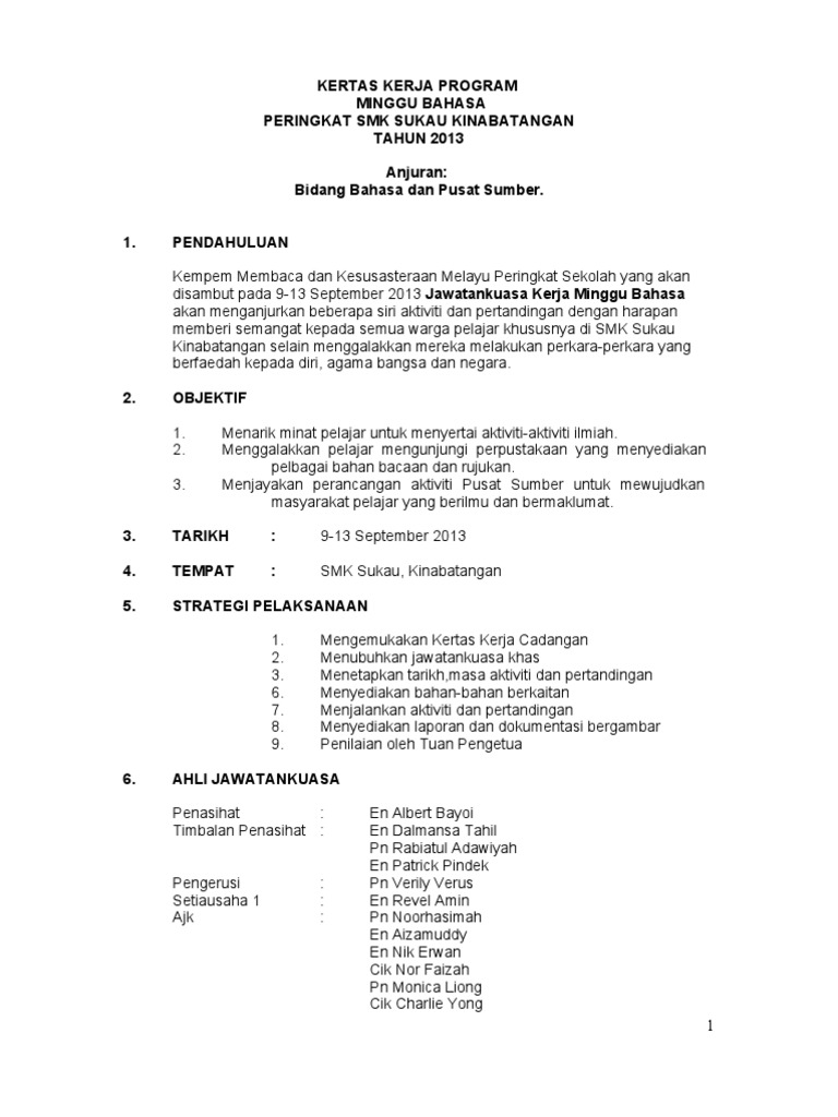 Kertas Kerja Minggu Bahasa Melayu Sumber Pendidikan