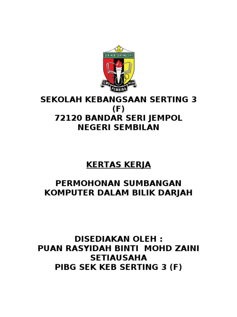 Kertas Kerja Mohon Sumbangan Bilik Kaunseling