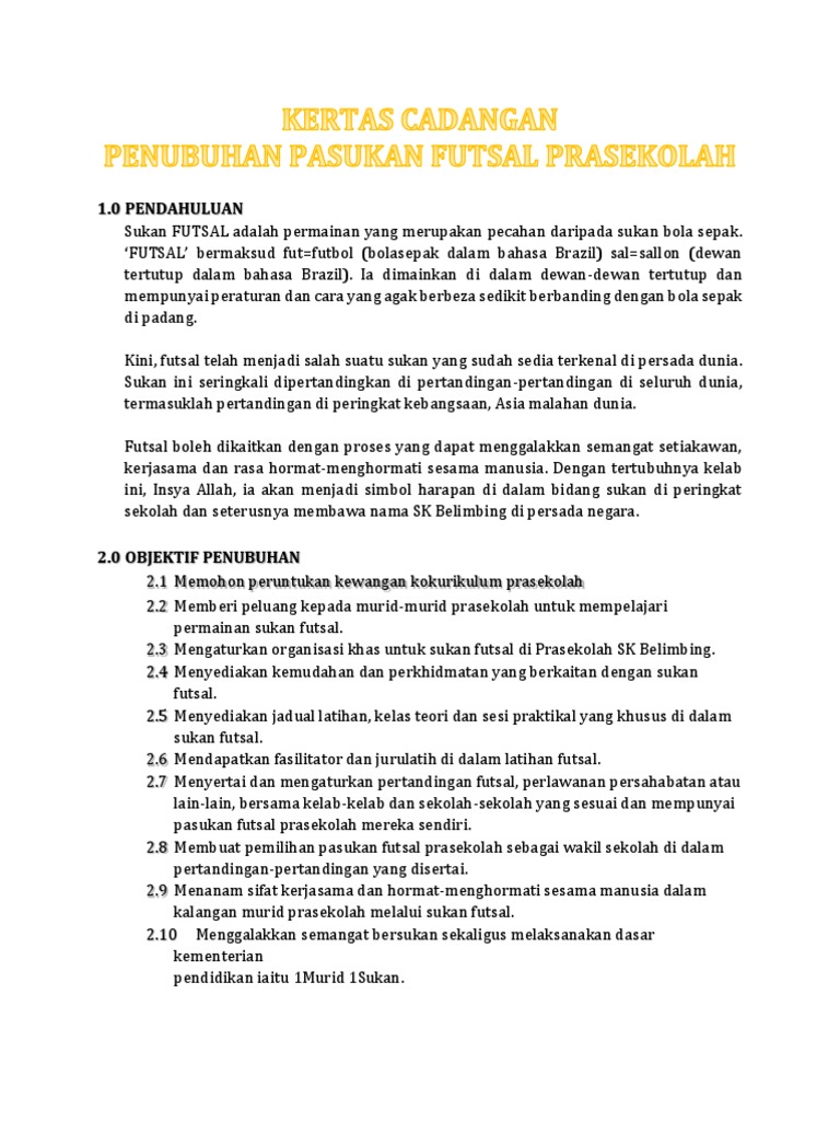Kertas Cadangan Pasukan Futsal Prasekolah
