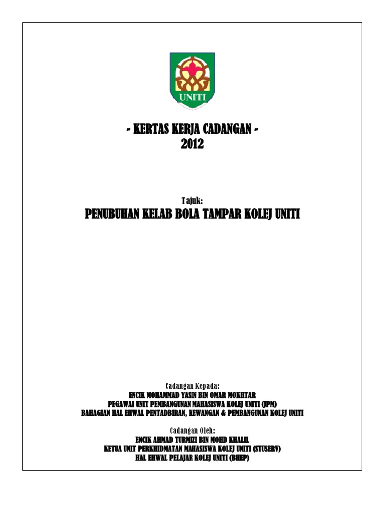 Kertas Kerja Cadangan Penubuhan Kelab Bola Tampar Kolej Uniti