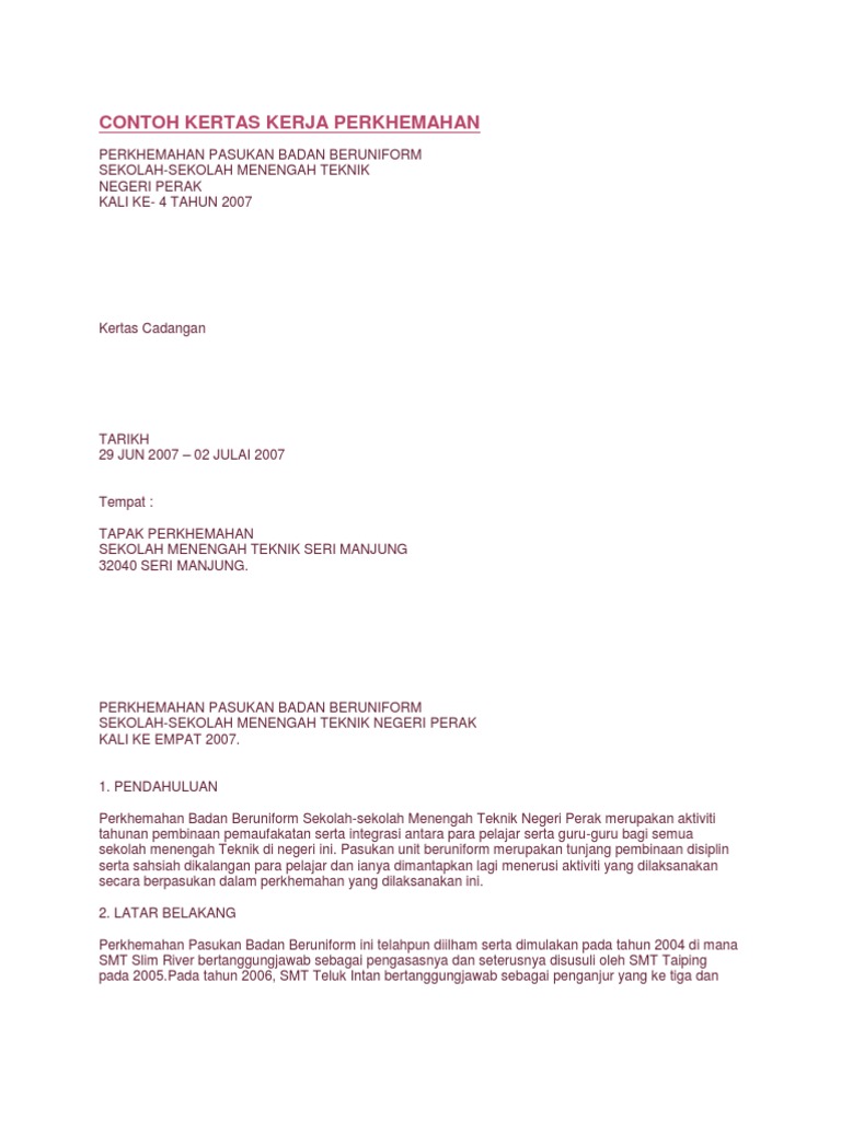 Contoh Kertas Kerja Perkhemahan Pendidik2u