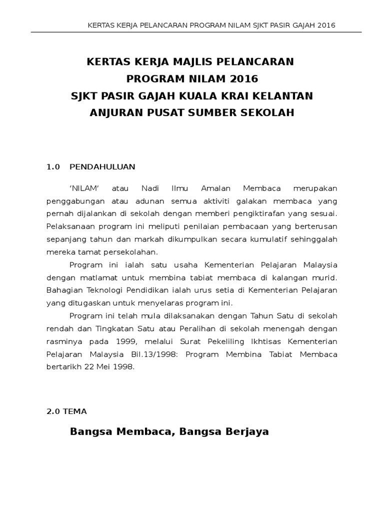 Kertas Kerja Majlis Pelancaran Program Nilam 2016