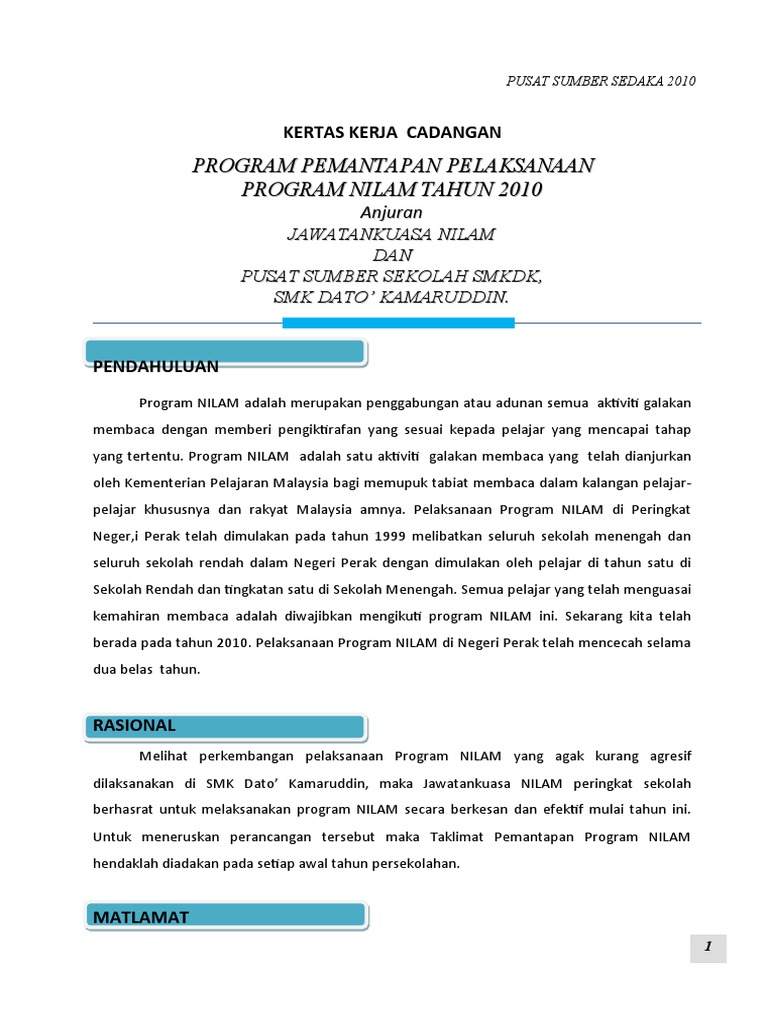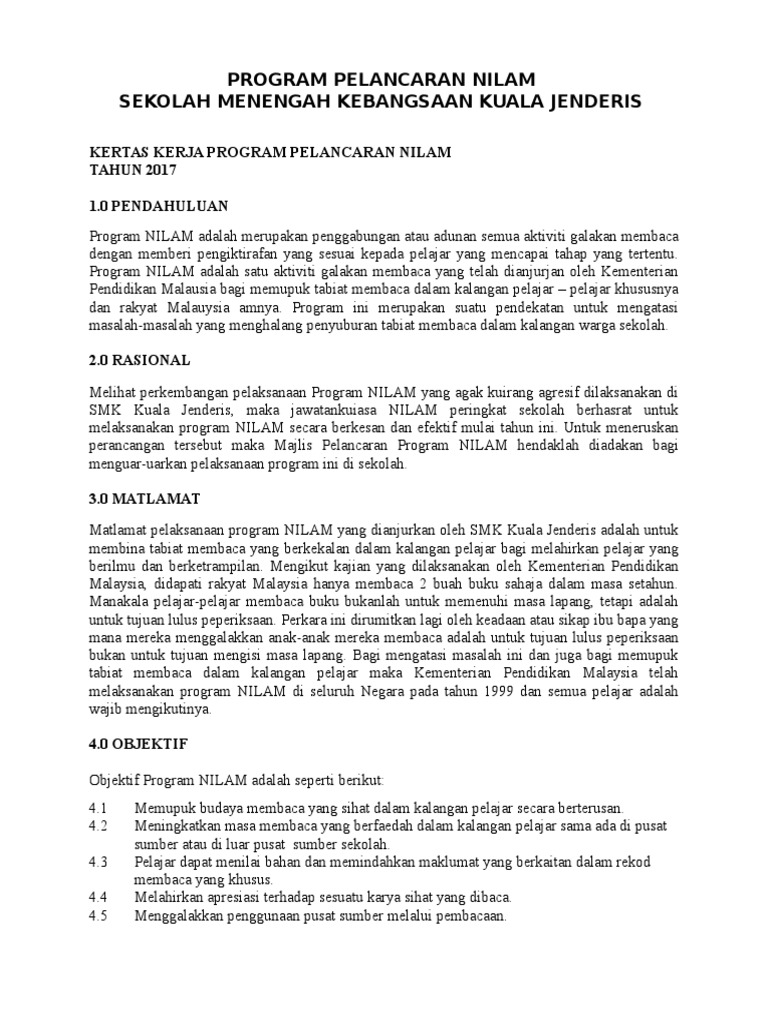 Kertas Kerja Program Nilam 2010 Doc Document