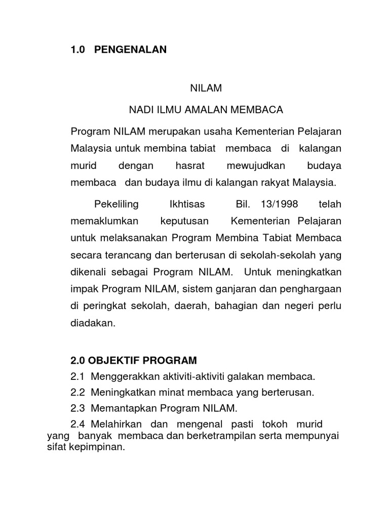 Kertas Kerja Program Nilam 2010 Doc Document