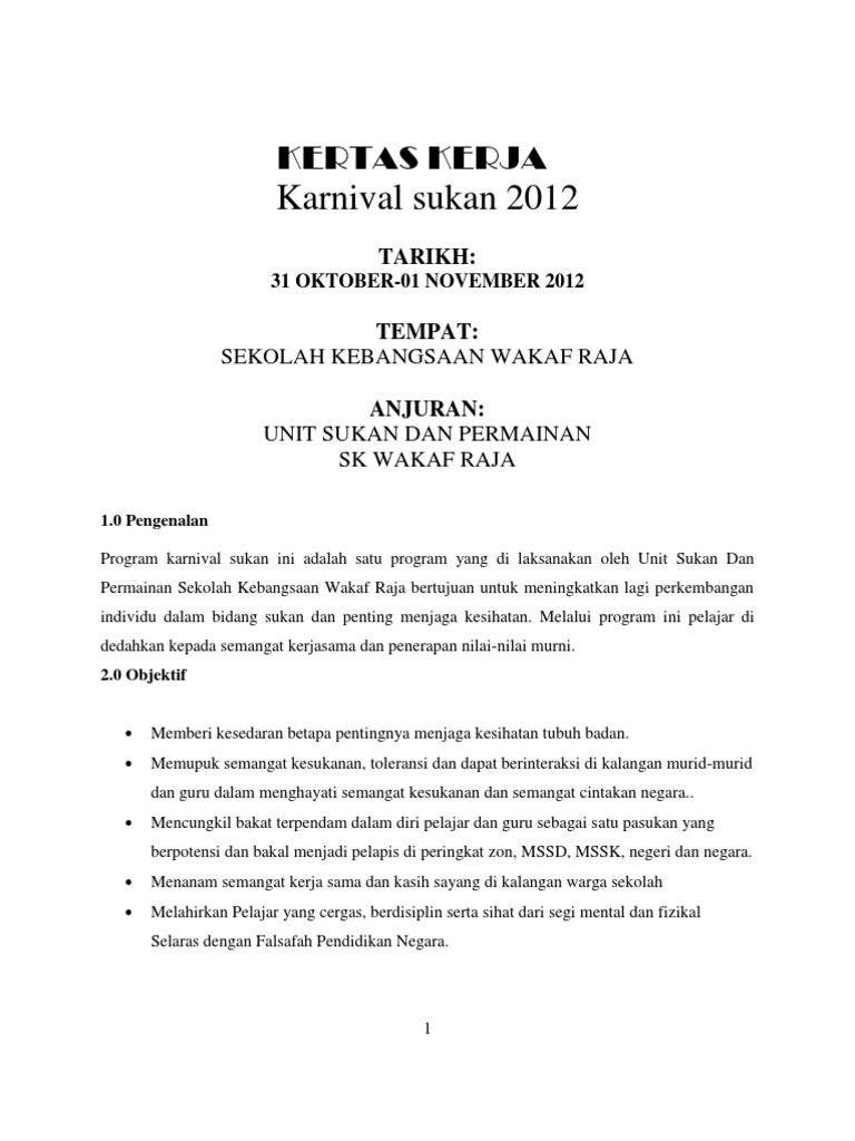 Doc Contoh Kertas Kerja Sukan Rekreasi Mohd Ghaztar Kamarull Ariffin Academia Edu