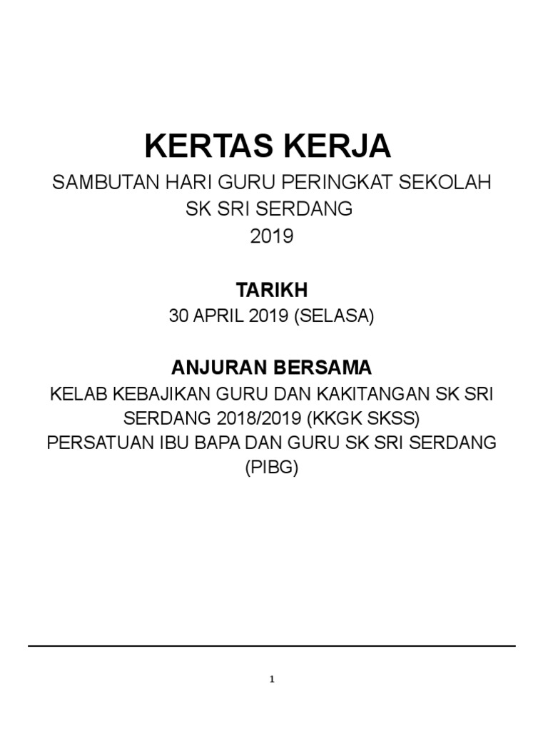 Kertas Kerja Sambutan Hari Guru Peringkat Sekolah Sk Sri Serdang 2019
