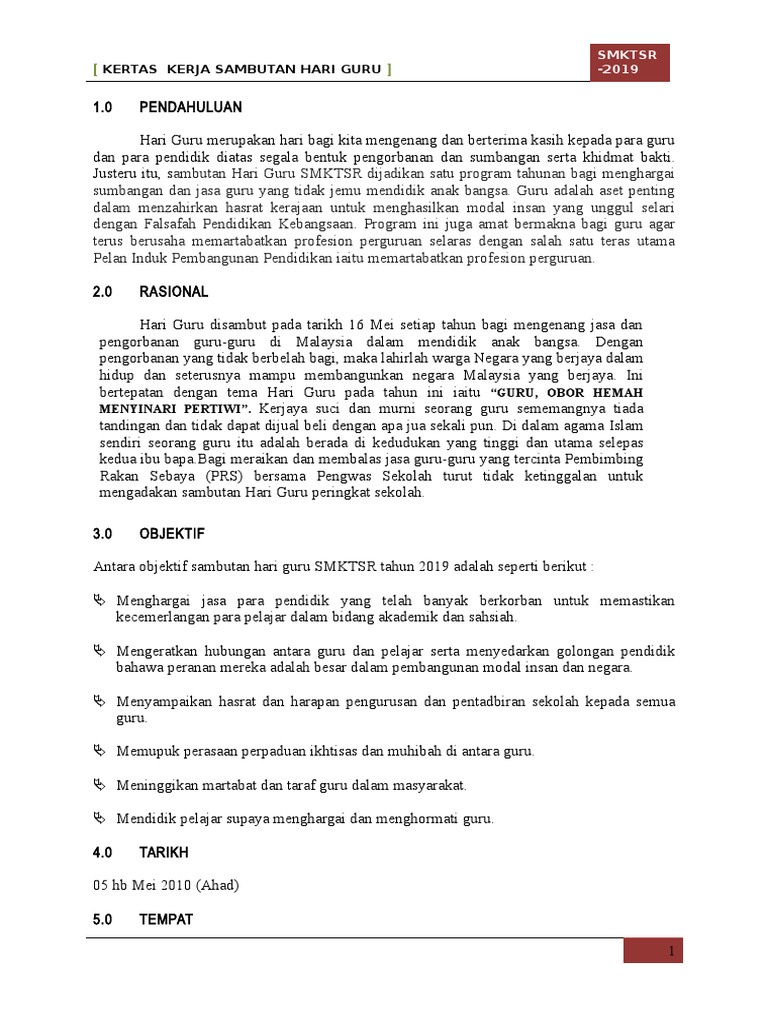 Kertas Kerja Sambutan Hari Guru 2019 Pages 1 9 Text Version Anyflip