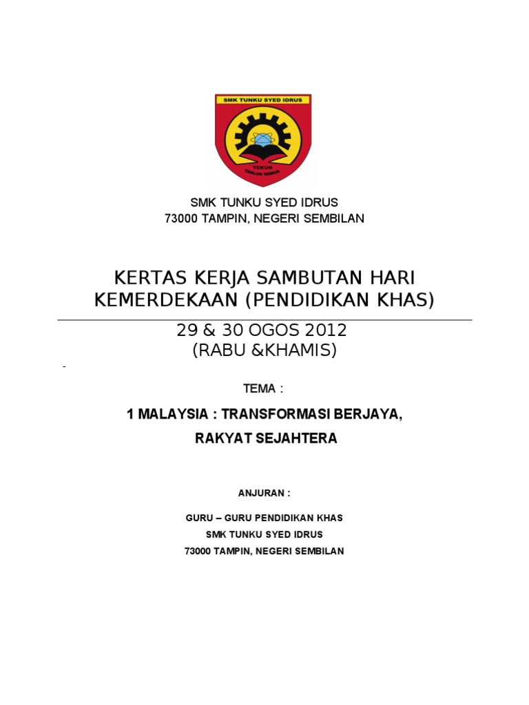 Contoh Kertas Kerja Sambutan Hari Kemerdekaan Pendidikan Khas Sekolah Rendah