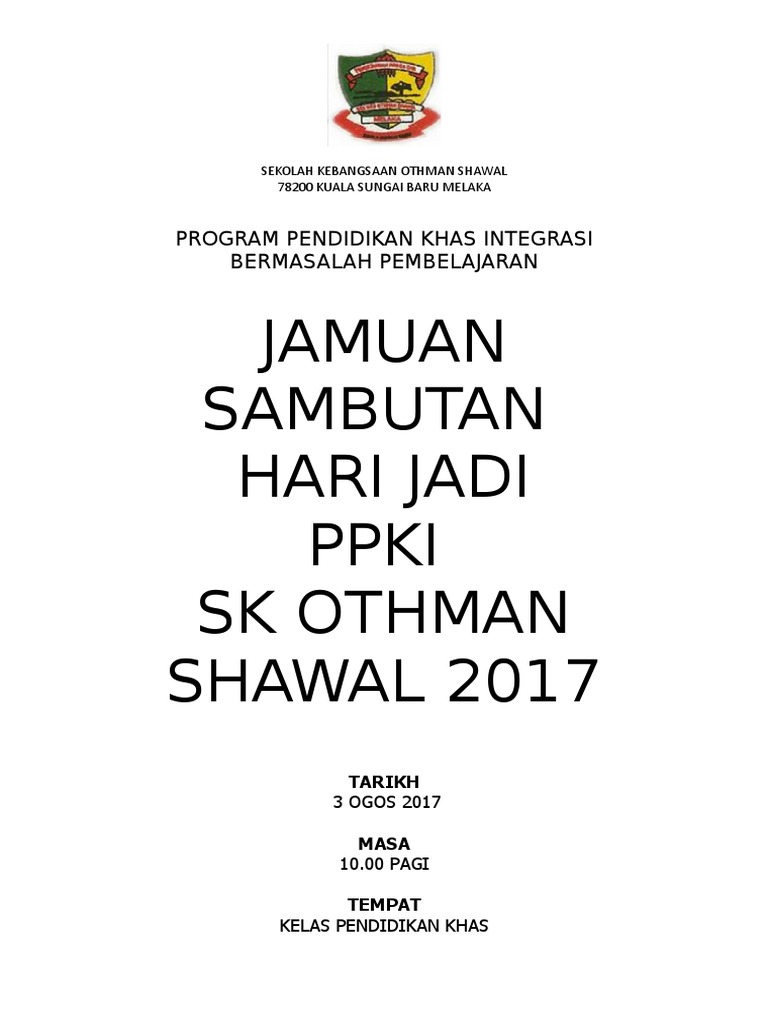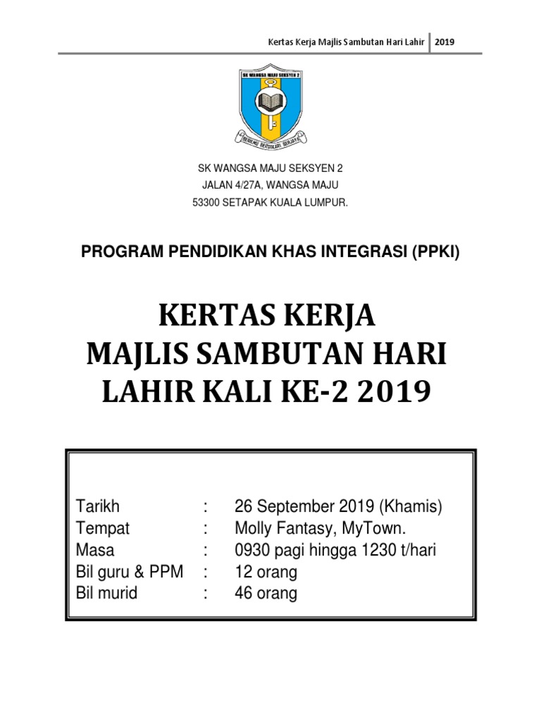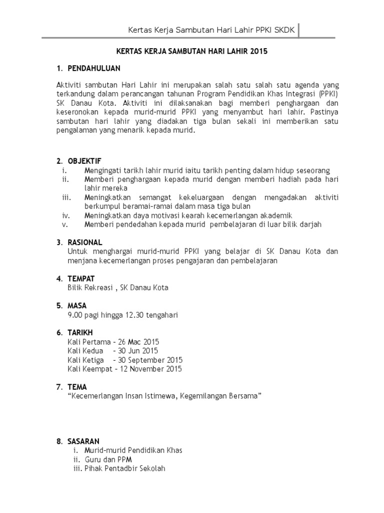 Kertas Kerja Sambutan Hari Lahir Ppki Sktj Sekolah Kebangsaan Toh Johan