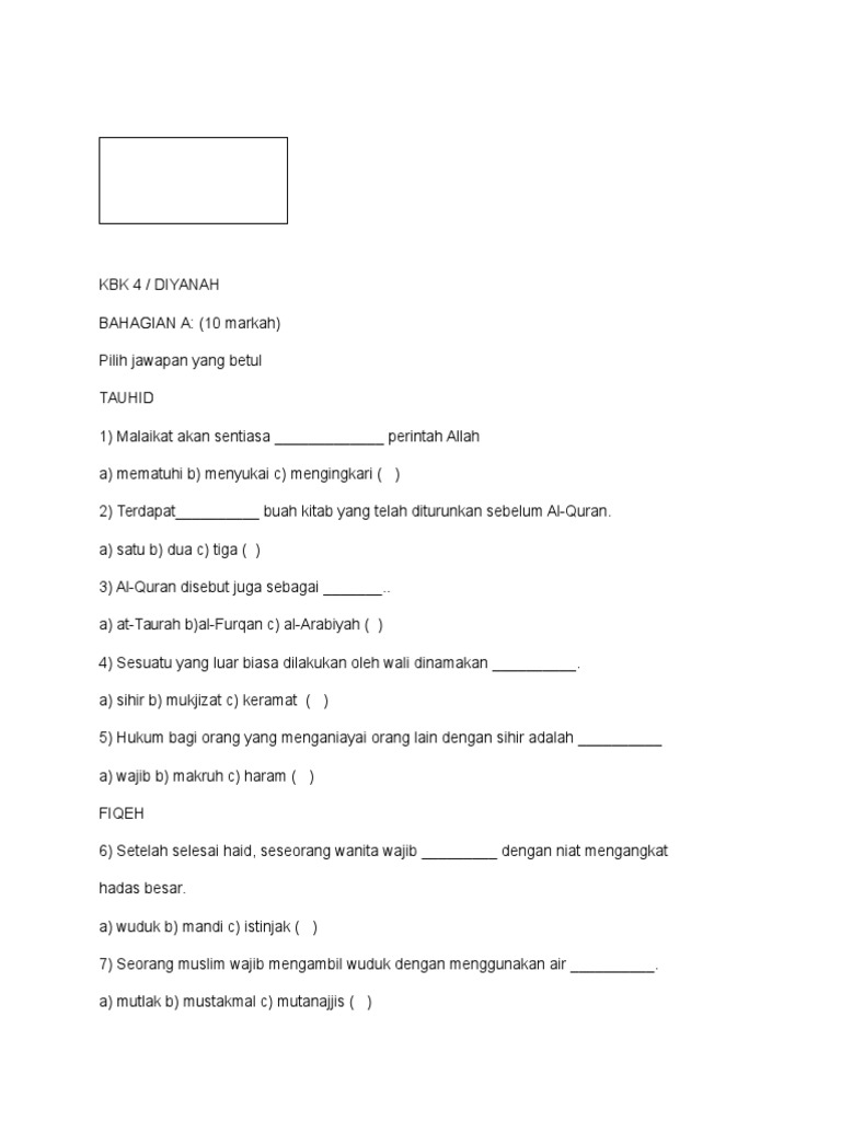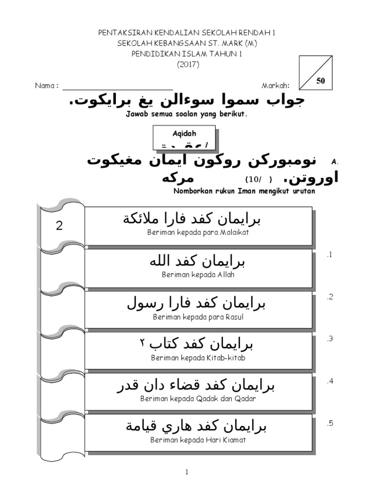 Soalan Pendidikan Islam Tahun 1 Ujian Mac Selangor U