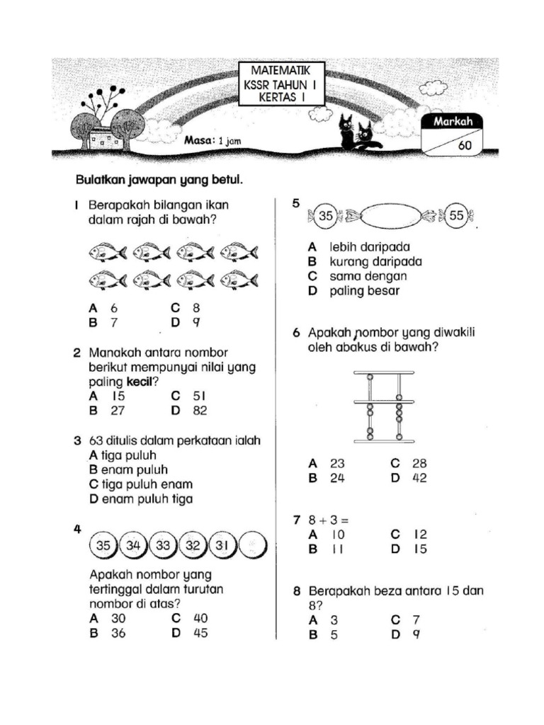 Soalan Ujian Matematik Kertas 1 Kssr Tahun 1