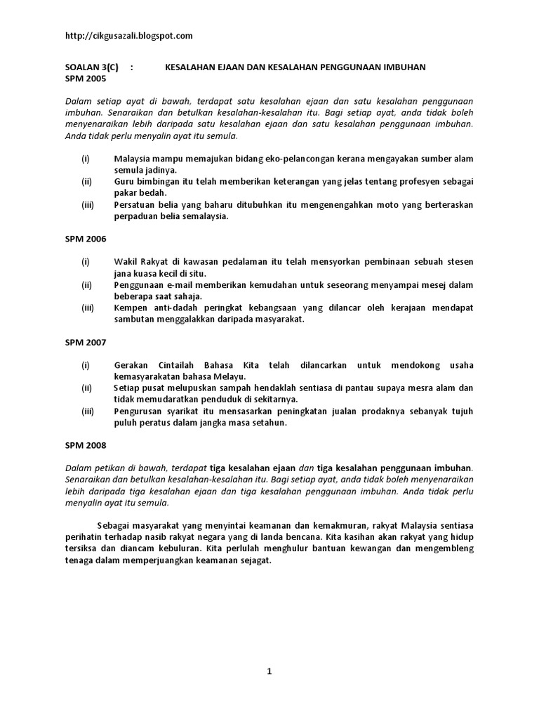 Laman Bahasa Melayu Spm Soalan Dan Cadangan Jawapan Soalan 3 C Mengesan Kesalahan Ejaan Dan Imbuhan Peperiksaan Percubaan Negeri Melaka