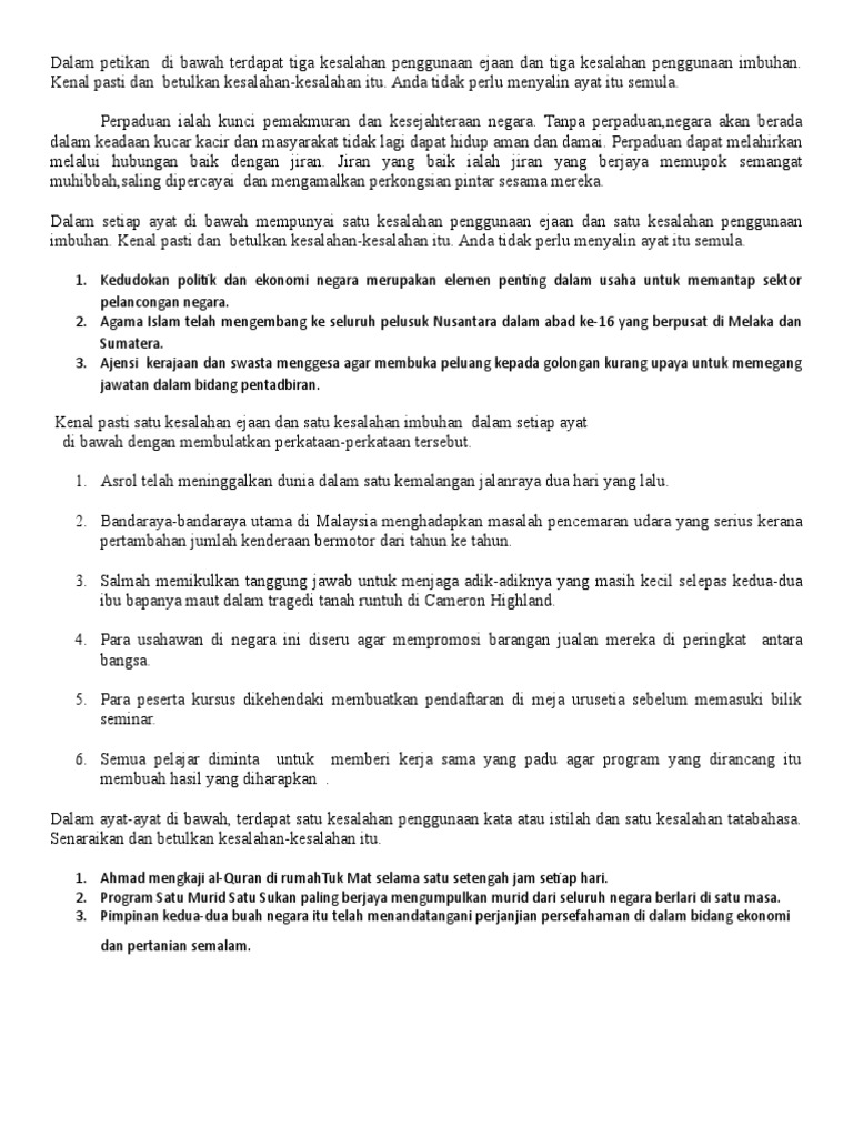 Latihan Mengenal Pasti Kesalahan Ejaan Dan Imbuhan Docx