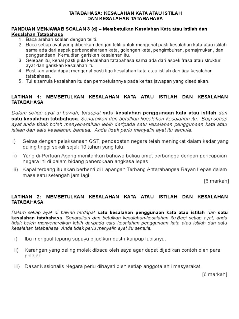 B5 Latihan Kesalahan Kata Istilah Dan Tatabahasa
