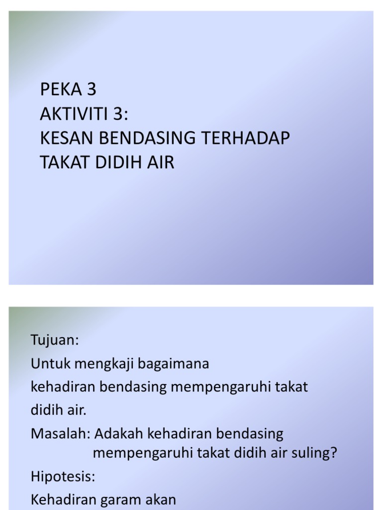 Eksperimen Peka 1 Kesan Bendasing Terhadap Takat Didih Air Tulen