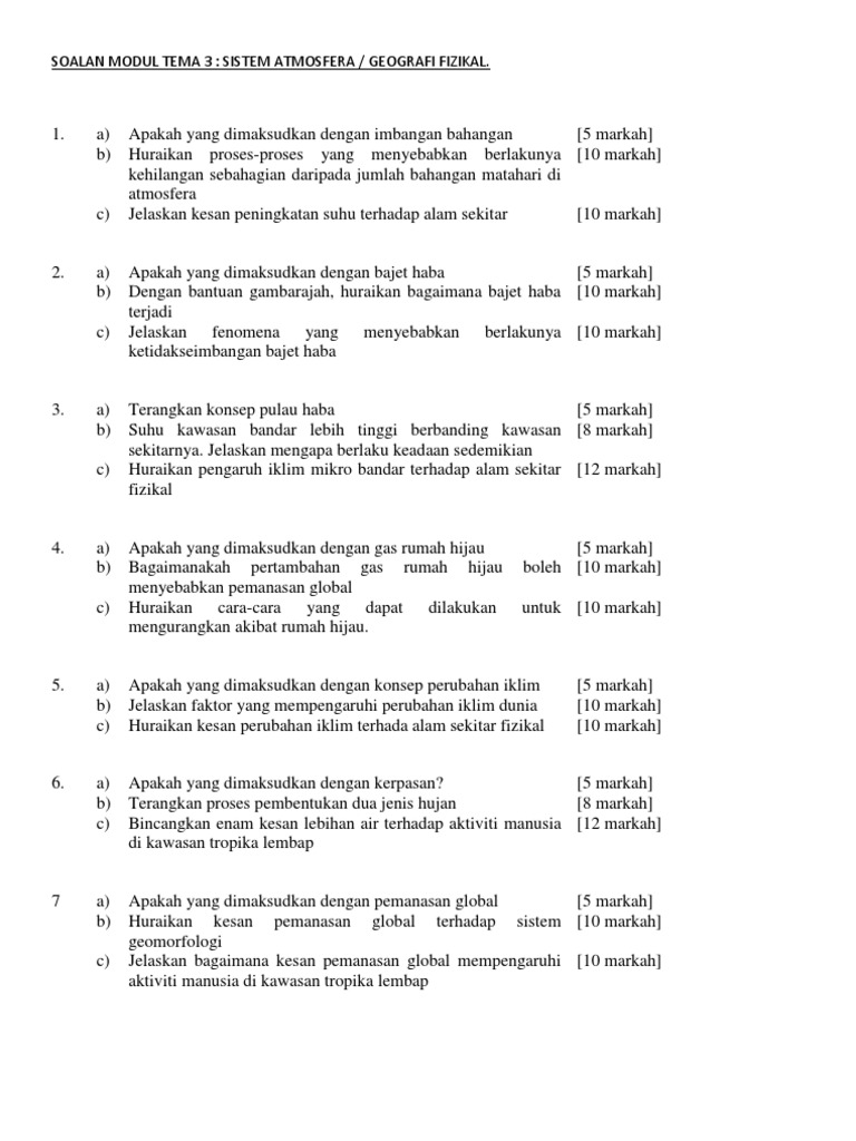 Boleh dikatakan hanya sebilanganrakyat malaysia yang prihatin terhadap isu isu alam sekitar. Oleh itu wajar untuk kita kupas apakah kesan pemanasan global terhadap alam sekitar yang merupakan satu satunya habitat kehidupan manusia. Pemanasan berlaku di seluruh dunia yang diakibatkan oleh aktiviti manusia seperti penebangan hutan kegiatan perkilangan dan industri permotoran penerokaan hutan pembangunan hutan batu dan pengautan khazanah khazanah alam sama ada di atas atau di dalam perut bumi. Banyak bukti telah menunjukkan yang segala fenomena perubahan iklim kesan daripada pemanasan global.