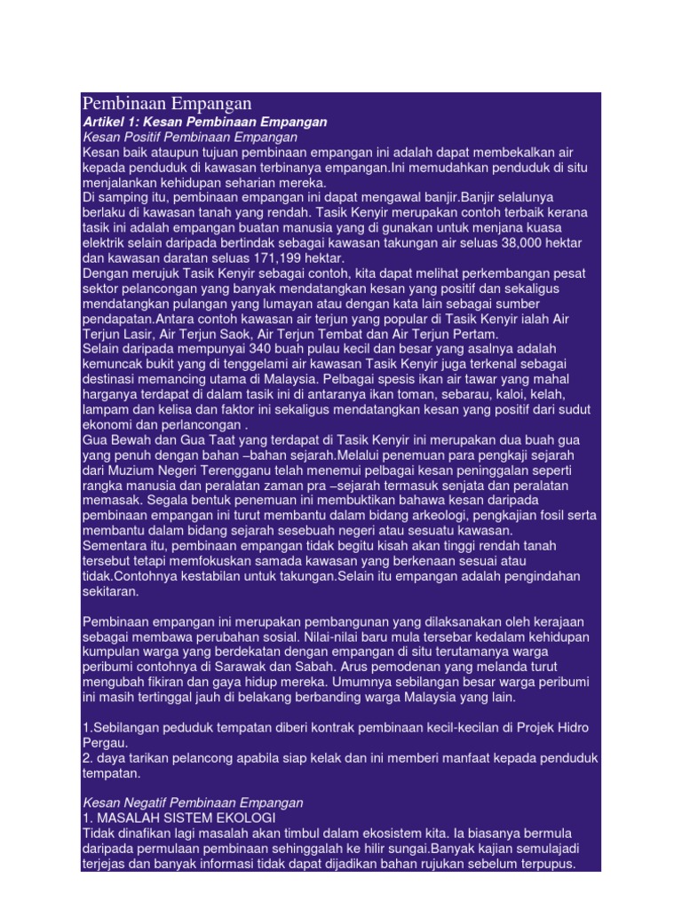 Impak Pembinaan Empangan Terhadap Alam Sekitar