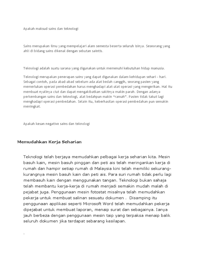 Contoh Karangan Kebaikan Perkembangan Sains Dan Teknologi Kepada Manusia Halimatonhassanshazalli