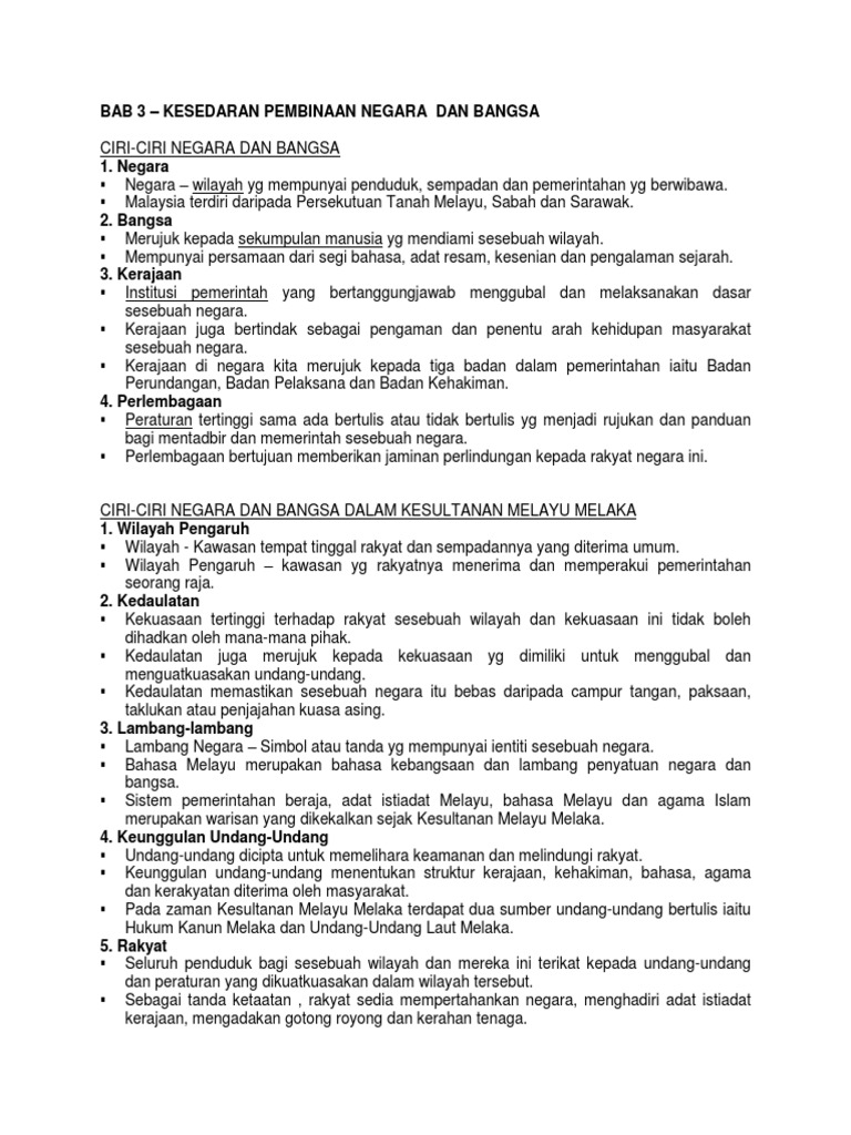Nota Sejarah Tingkatan 5 Bab 3 Kesedaran Pembinaan Negara Dan Bangsa Pdf Document