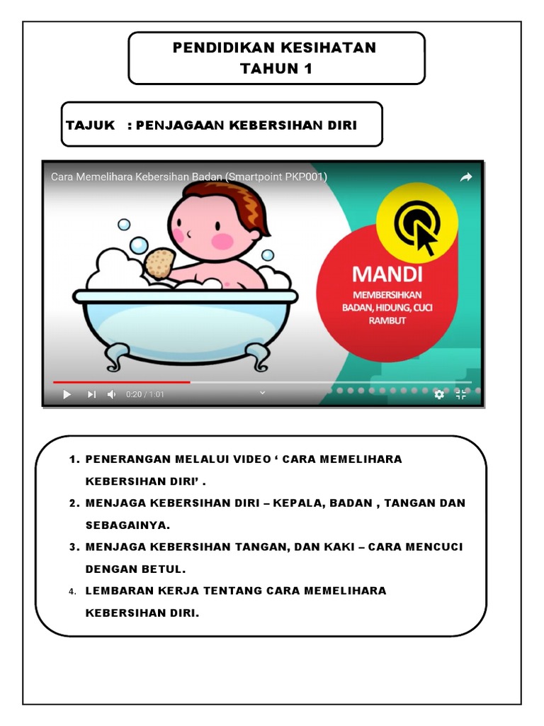 Kesihatan Lembaran Kerja Cara Menjaga Kebersihan Diri