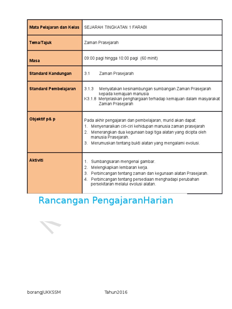 Rpt Docx Rancangan Pengajaran Tahunan Tingkatan 1 Tema Sejarah Kita Dan Dunia Tajuk 3 Zaman Prasejarah Minggu Standard Kandungan Zaman Prasejarah Course Hero