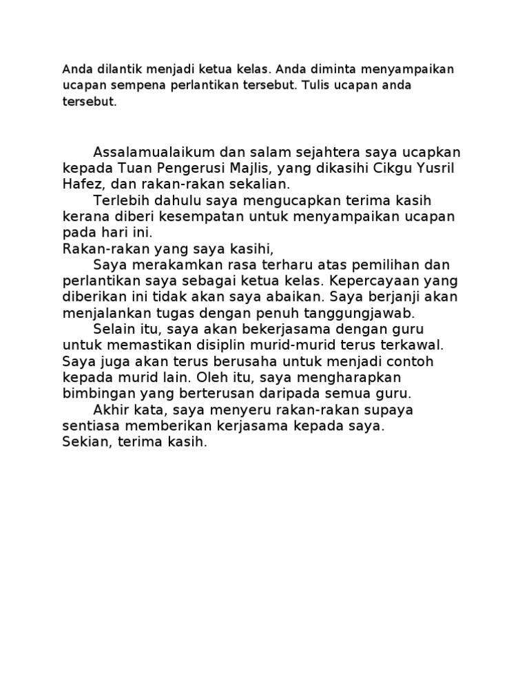 Ucapan Ketua Kelas