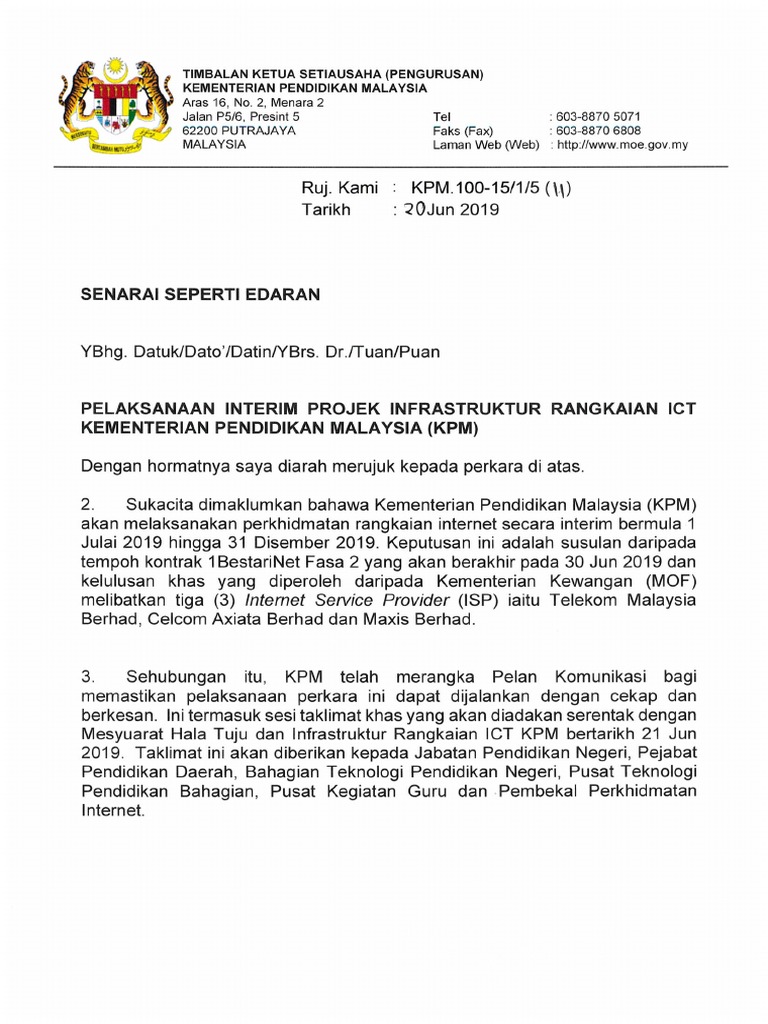 Surat Pelaksanaan Interim Di Agensi Dan Sekolah Kpm