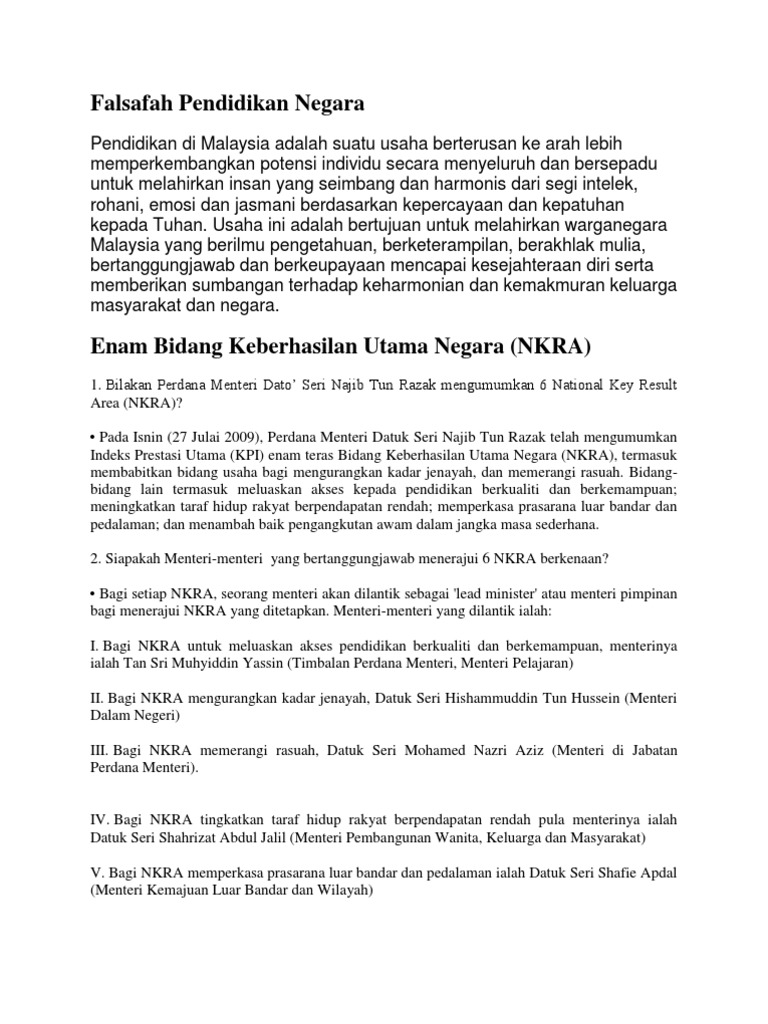 Nkra Bidang Keberhasilan Utama Negara Pdf Document