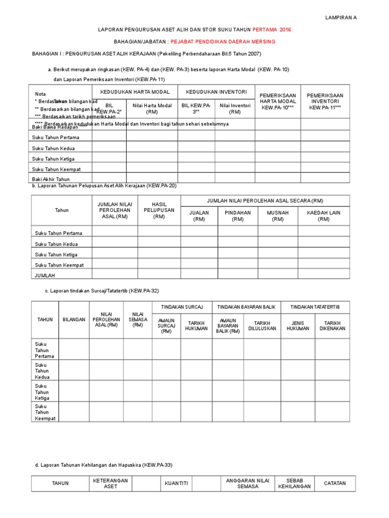 Lampiran A Laporan Pengurusan Aset Alih Dan Stor Suku Tahun Bahagian Jabatan