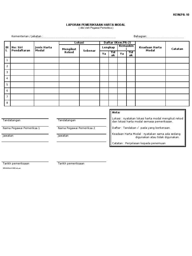 Kew Pa 10 Laporan Pemeriksaan Harta Modal