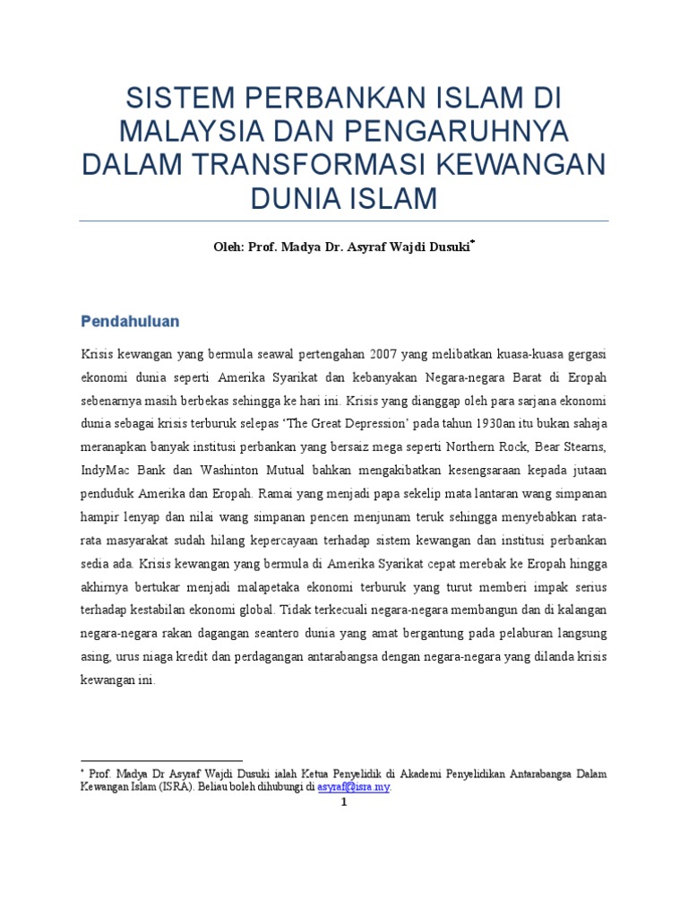 Sistem Perbankan Islam Di Malaysia Dan Pengaruhnya Dalam Transformasi Kewangan Dunia Islam