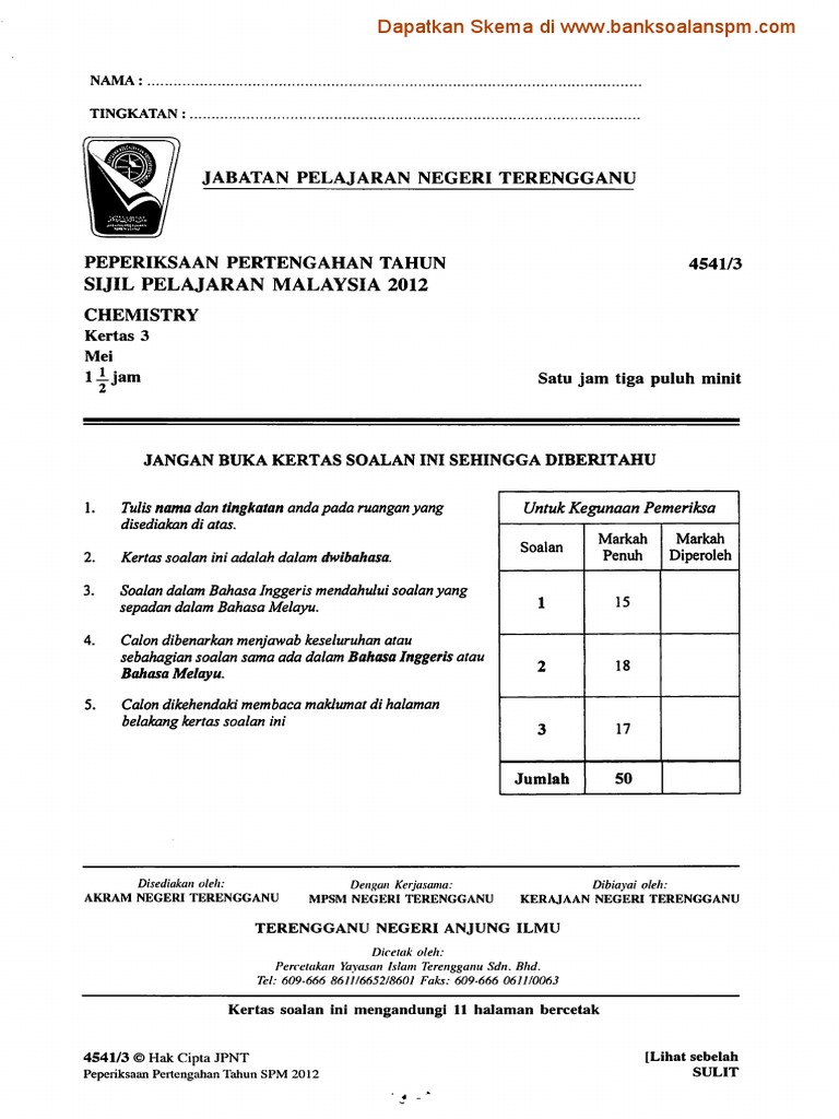 Kimia Kertas 3 Ting 4 Pertengahan Tahun 2012 Terengganu