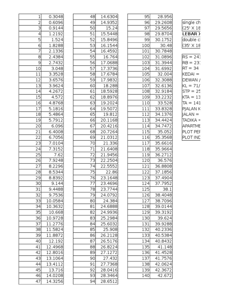 1 jemba 24 kaki. Karena 1 kaki persegi 0 093 meter persegi kalikan hasil yang anda peroleh dengan 0 093 untuk mendapatkan hasilnya dalam satuan meter persegi. Dari segi metrik kaki persegi adalah persegi dengan tepi 0 3048 meter panjang. 1 depa 4 hasta 2 ela 1 8288 meter.