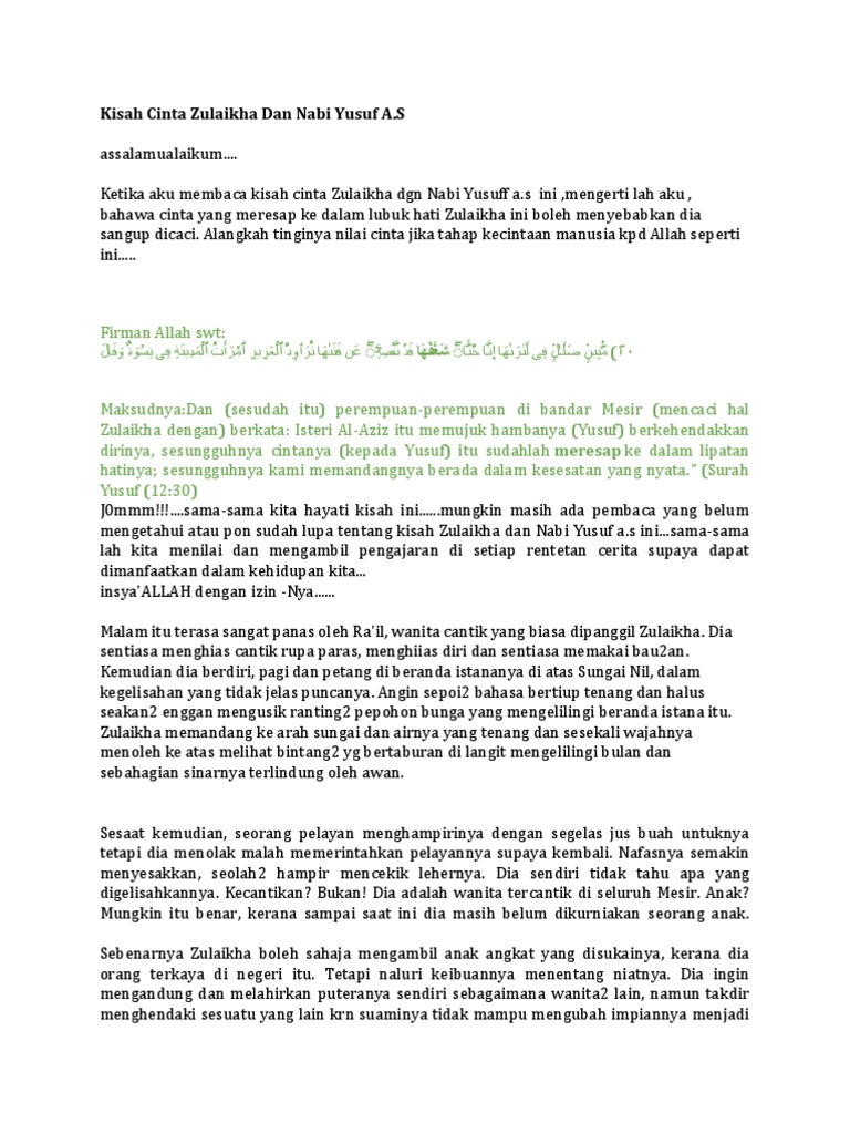 Kisah Cinta Nabi Yusuf As Dan Zulaikha Docx Document