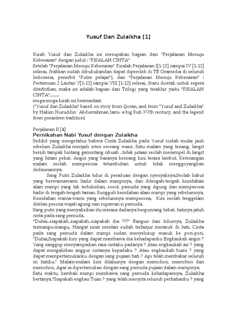 Islam Love Story Yusuf Dan Zulaikha Wattpad