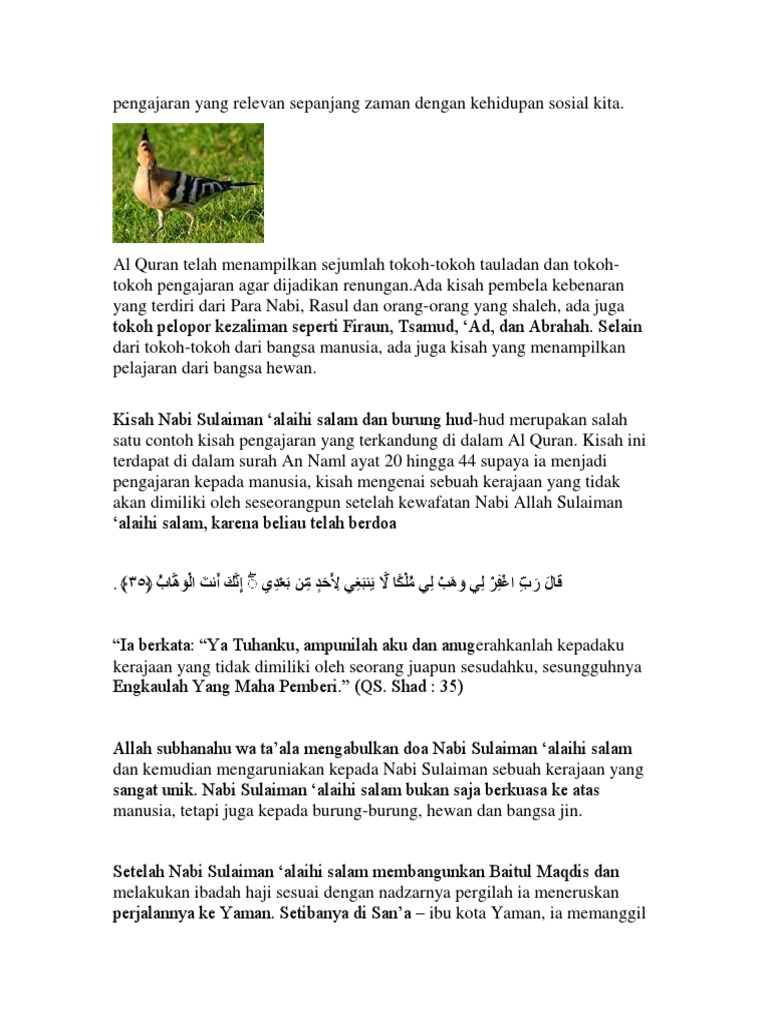 Kisah Singkat Nabi Sulaiman As Dan Burung Hud Hud Official Website Initu Id