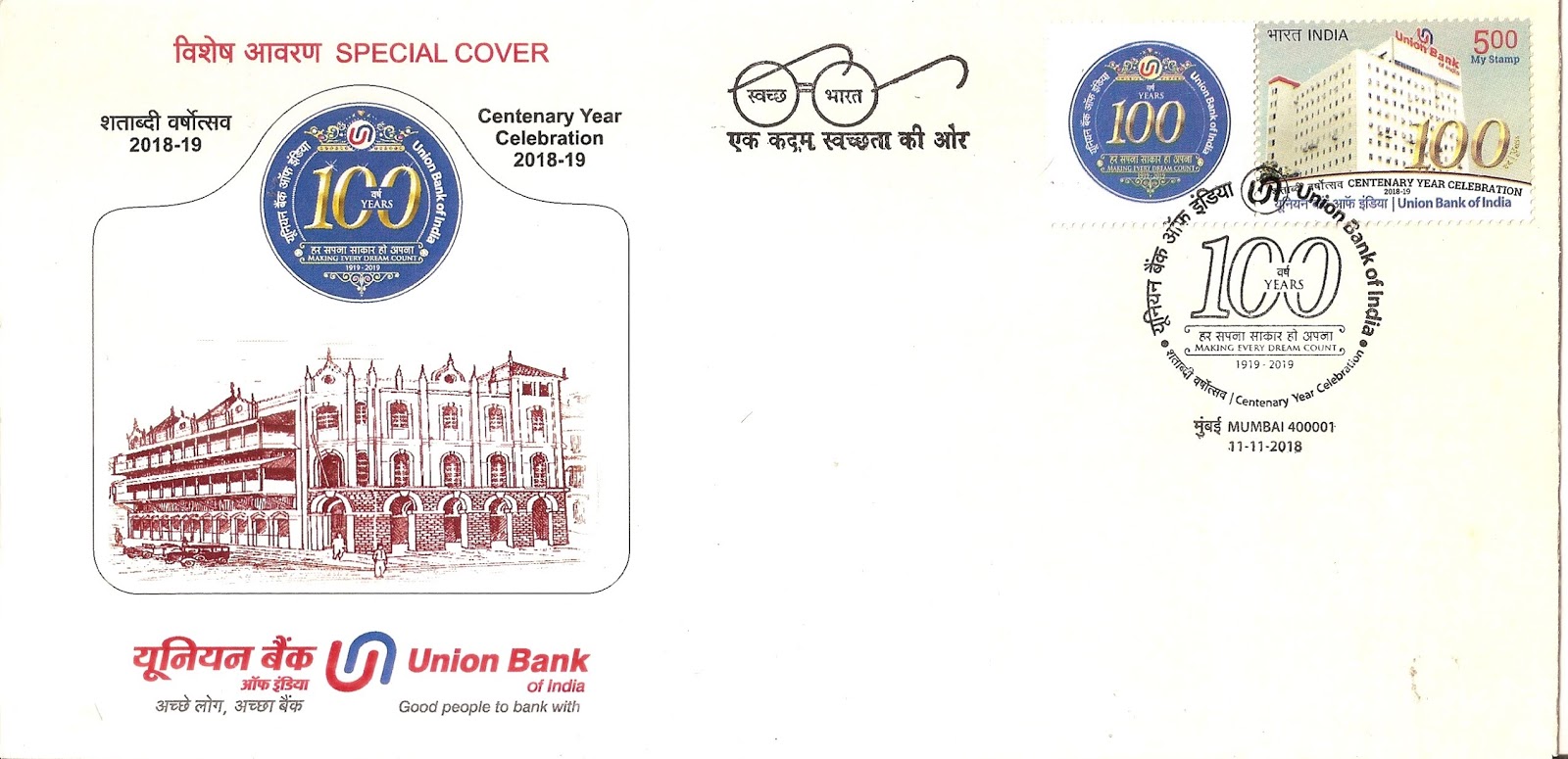 Coins And More 1003 Union Bank Of India Centenary Year Celebration 2018 19 A Special Cover Brought Out By The Maharashtra Postal Circle Of India Post On 11 11 2018