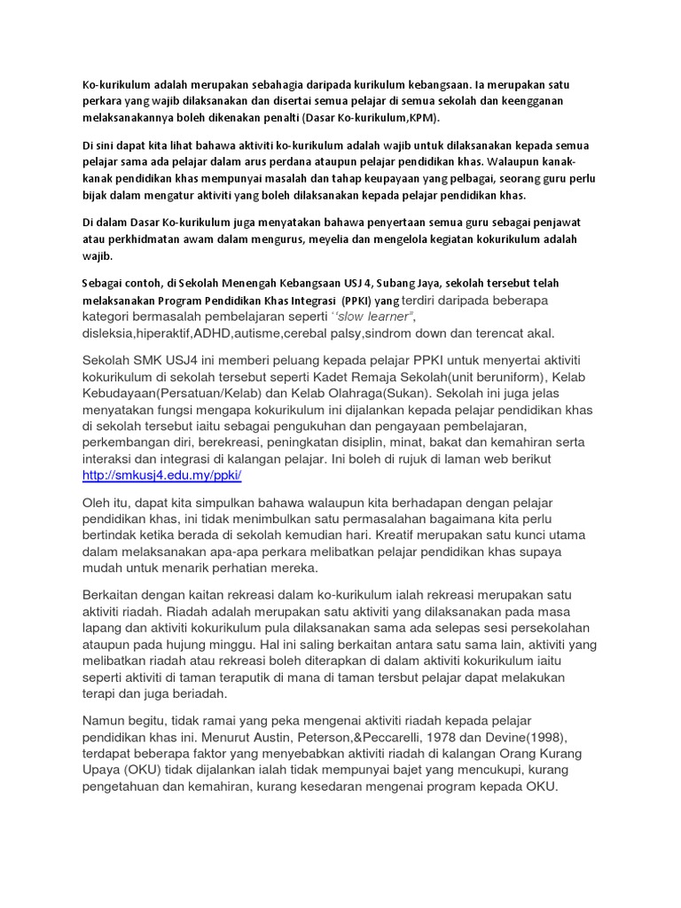 Jawapan Forum Kokurikulum Dan Rekreasi Dalam Pendidikan Khas