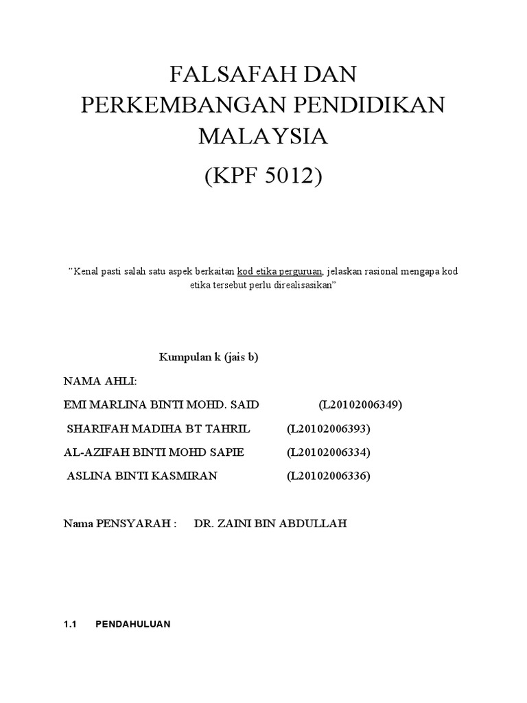 Kepentingan Etika Dan Kod Etika Kepada Seorang Guru Pdf Document