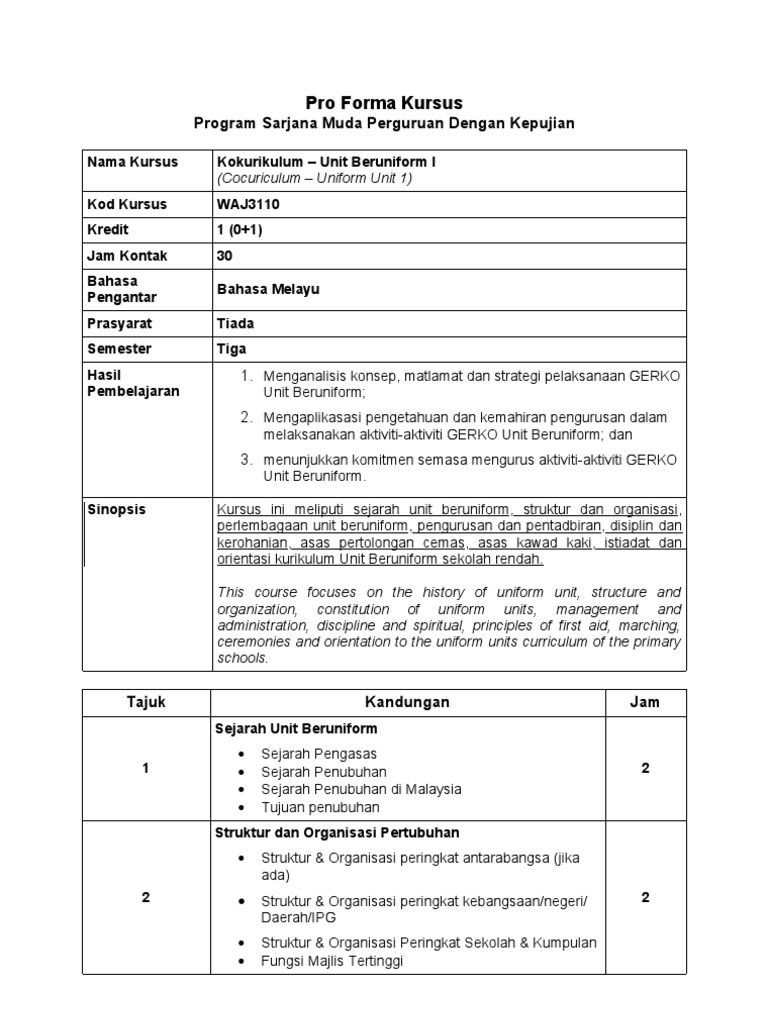 05 Pro Forma Waj3110 Unit Beruniform I