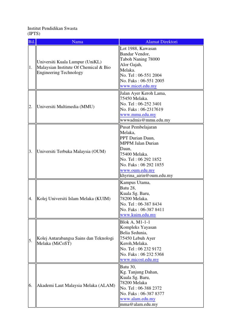Senarai Ipta Ipts Di Melaka 2020