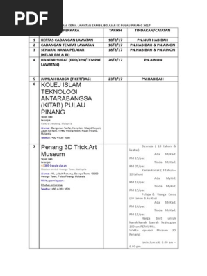 Jadual Kerja Lawatan Sambil Belajar Ke Pulau Pinan 1 Doc