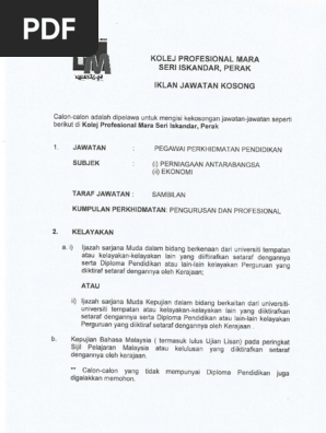 Kolej Profesional Mara Seri Iskandar On Twitter Iklan Jawatan Kosong Pensyarah Sambilan Ganti Kpm Seri Iskandar Pegawai Ko Kurikulum Pihak Kolej Berbesar Hati Menjemput Anda Yang Di Luar Sana Yang Masih Mencari Pekerjaan