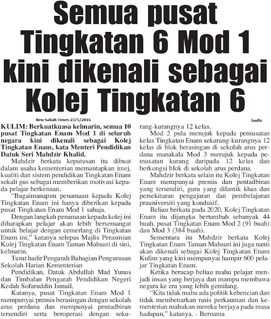 Blog Koleksi Akhbar Pendidikan New Sabah Times Semua Pusat Tingkatan 6 Mod 1 Kini Dikenali Sebagai Kolej Tingkatan 6