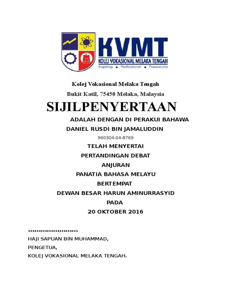 Sijilpenyertaan Kolej Vokasional Melaka Tengah