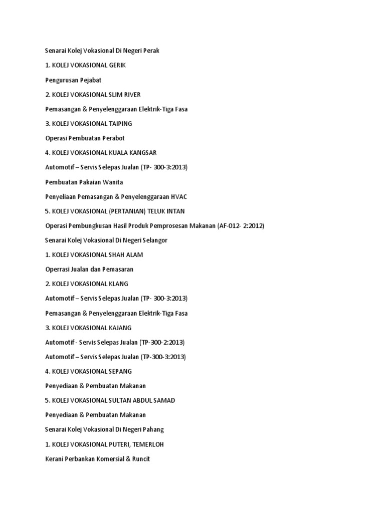 Senarai Kolej Vokasional Di Negeri Perak Docx