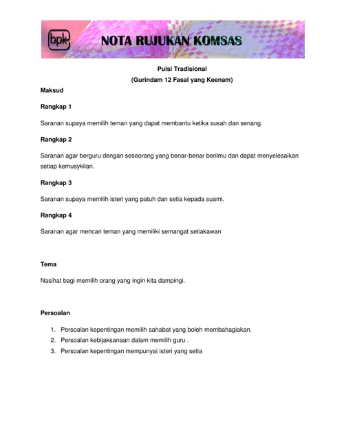 Nota Rujukan Sajak Dirgahayu Bahasaku Pdf Google Drive