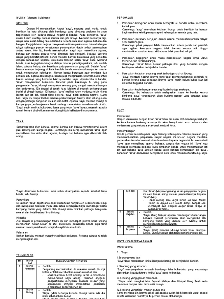 Nota Komsas Tingkatan 4 Cerpen Munsyi Pendidikanmalaysia Com