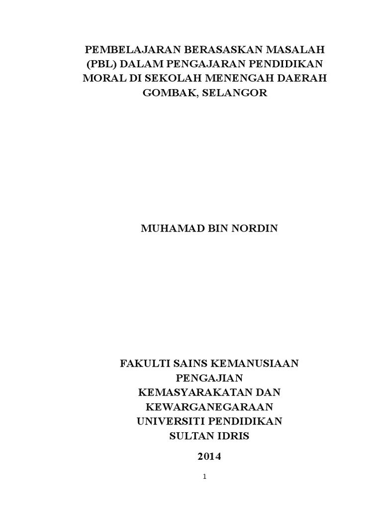 Pembelajaran Berasaskan Masalah Pbl Dalam Pengajaran Pendidikan Moral Di Sekolah Menengah Daerah Gombak Selangor