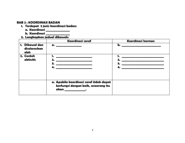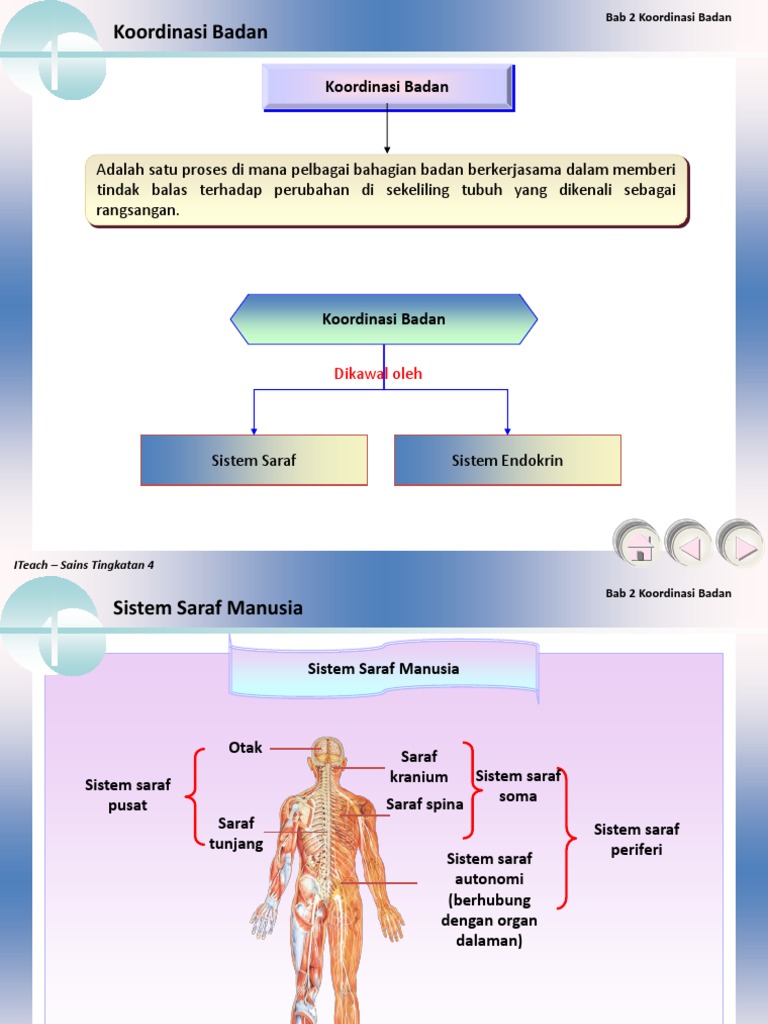 Bab 7 koordinasi badan https. Bab 3 teknik mengukur paramter kesihatan badan https. Bab 2 tingkatan 4. Koordinasi badan koordinasi merupakan tindak balas badan kita ke arah mana mana rangsangan dari dan di luar badan dua jenis koordinasi i koordinasi saraf ii koordinasi kimia hormon 3.